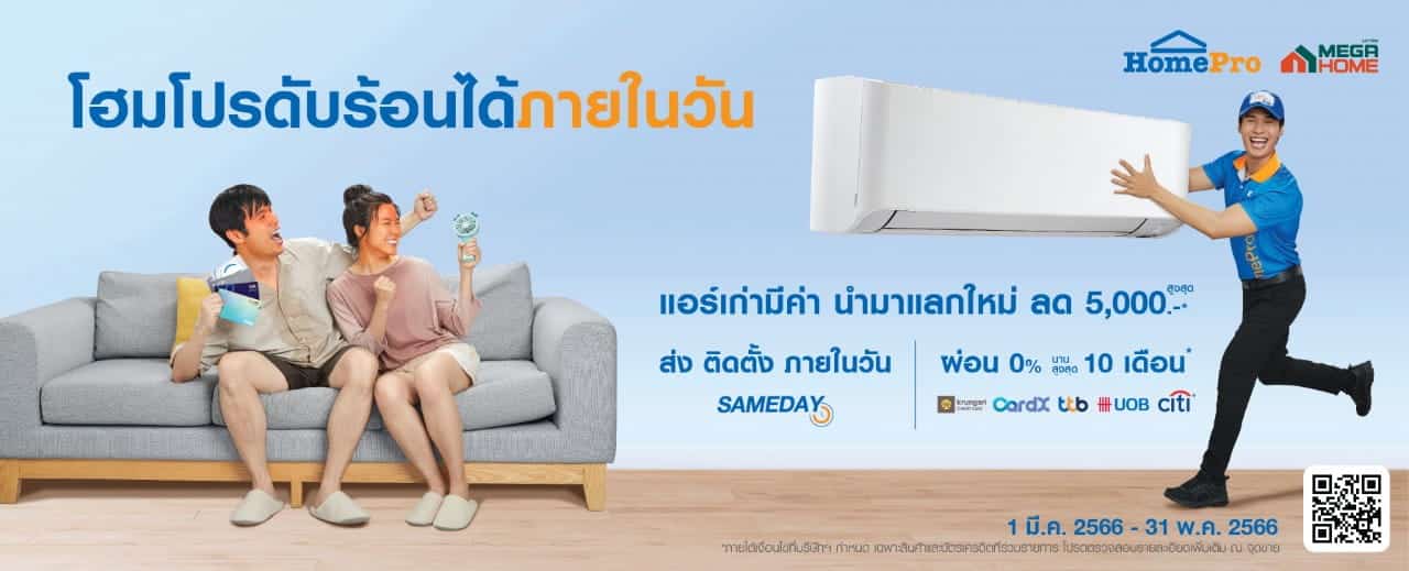 โฮมโปร จัดแคมเปญพิเศษเอาใจลูกค้าต้อนรับซัมเมอร์ “ลดดับร้อนได้ภายในวัน” ตั้งแต่วันนี้ – 31 พ.ค. 66 นี้ ที่โฮมโปร ทุกสาขาby newssubmitMarch 8, 2023News