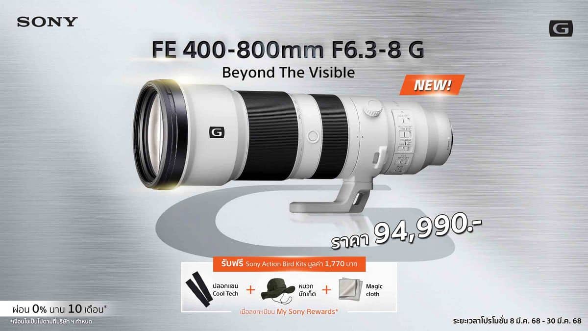 โซนี่ไทยเปิดตัวเลนส์ในตระกูล G Series สองรุ่นใหม่! FE 400-800mm F6.3-8 G OSS และ FE 16mm F1.8 G ครอบคลุมทุกมุมมอง ตั้งแต่ซูเปอร์เทเลโฟโต้ถึงมุมกว้างพิเศษ เริ่มวางจำหน่ายพร้อมโปรโมชั่นพิเศษตั้งแต่เดือนมีนาคมศกนี้by krapalmMarch 1, 2025PR News