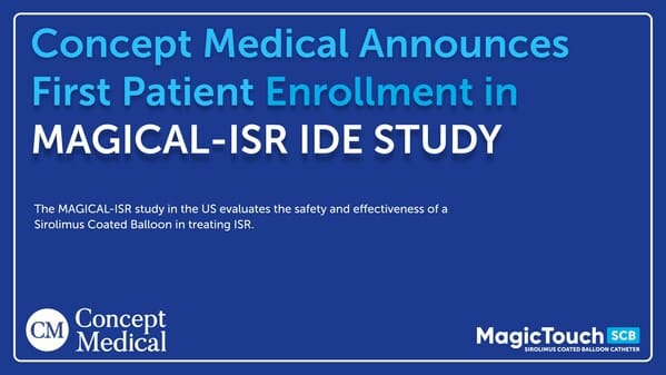 CONCEPT MEDICAL ANNOUNCES ENROLLMENT OF FIRST PATIENT IN “MAGICAL-ISR” IDE STUDY IN THE USby April 20, 2024PR Newswire